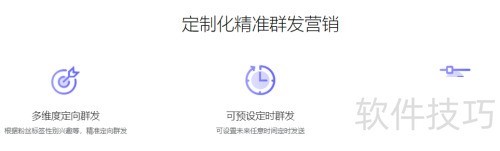 3、 高级群发功能支持多维度定向与定时发送。