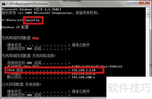 6、 接下来需输入电脑的IP地址。若不清楚本机IP,可按下Win+R,输入cmd后回车,再输入ipconfig并回车,即可在IPv4项查看到对应地址。