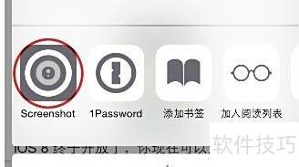 2、 向右滑动并点击更多,开启Screenshot开关后,该功能按钮便会显示在Safari的扩展菜单中,方便随时使用。