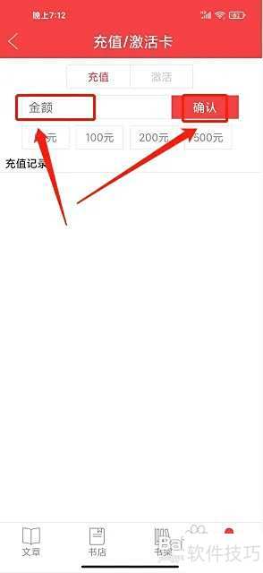 4、 进入充值卡页面,输入金额后点击确认即可。