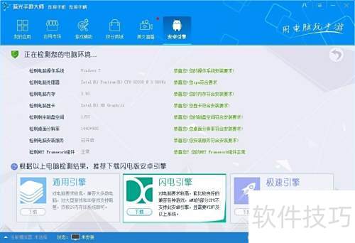 3、 安装安卓模拟器后,还需配置安卓引擎才能运行游戏。引擎界面会根据电脑当前性能自动推荐合适的版本,用户可按提示选择安装。若设备配置较高,也可将三款引擎全部安装,以获得更灵活的使用体验,满足不同游戏的需求。