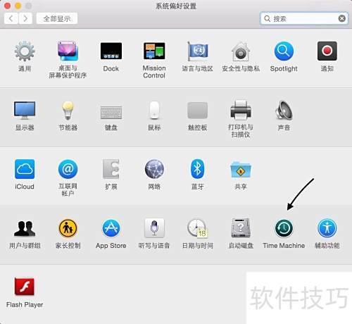2、 随后在系统偏好设置里找到并开启 Time Machine,界面所示。