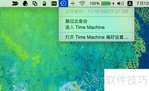 16、 当你已创建 Time Machine 备份,需恢复数据时,只需点击菜单栏中的 Time Machine 图标,然后选择进入 Time Machine即可开始恢复操作。整个过程简单直观,方便快速找回所需文件。