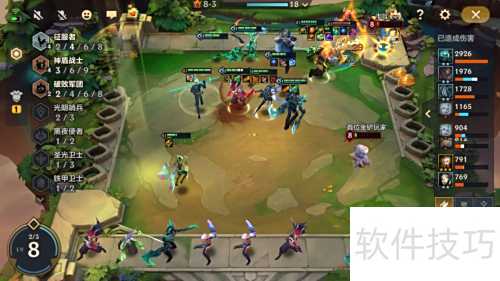 3、 后期用金铲铲与暴风大剑合成神盾战士纹章,赋予征服者神盾羁绊,大幅提升阵容战斗力。