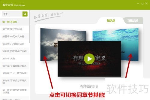 7、 播放视频时可切换同章节其他知识点,或返回首页选择新章节继续学习。