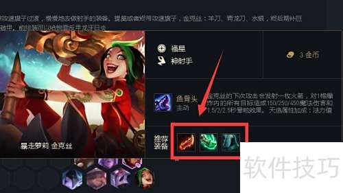 3、 金克斯作为主力射手,装备羊刀、青龙刀与水银后,能频繁释放技能,输出极高。