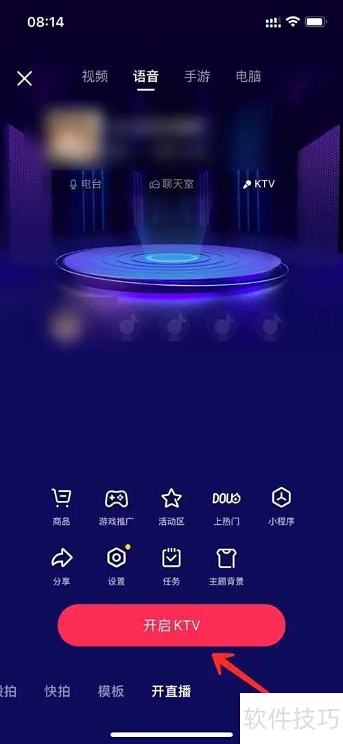 3、 进入语音KTV页面后,点击开启按钮即可使用KTV功能。