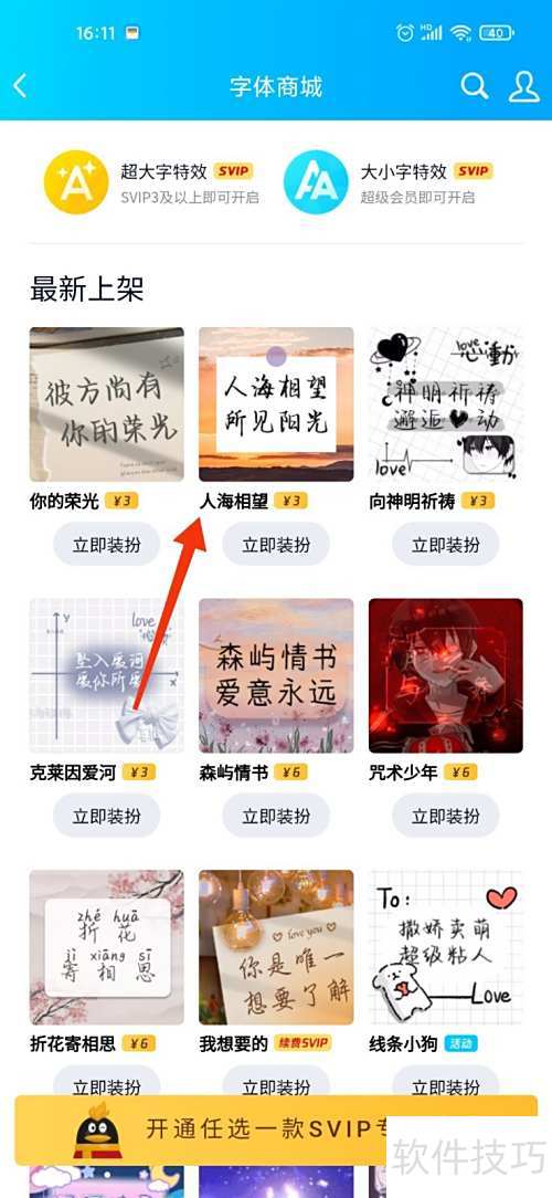 3、 点击字体后选择立即装扮,按提示操作即可轻松制作出炫彩发光字效果。