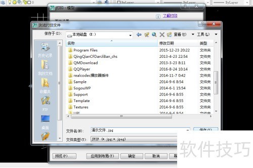 2、 在工作界面左上角点击文件,从下拉菜单中选择打印,在弹出的设置窗口中,将打印机名称更改为*.jpg格式。