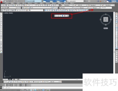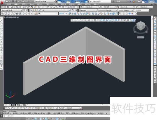 CAD中切换至三维制图界面的操作步骤。