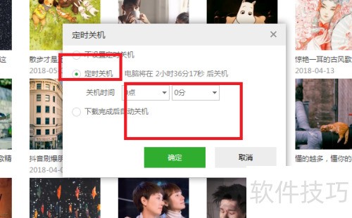 4、 选择定时关机功能,设定所需关闭时间即可。