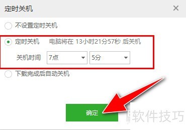 5、 勾选定时关机选项,设置具体时间后点击确定即可生效。