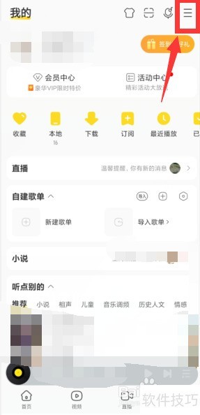 1、 打开酷我音乐,点击右上角三条横线图标即可。