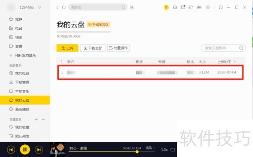 7、 上传完成后,可在云盘页面查看已上传的音乐文件,具体效果所示。