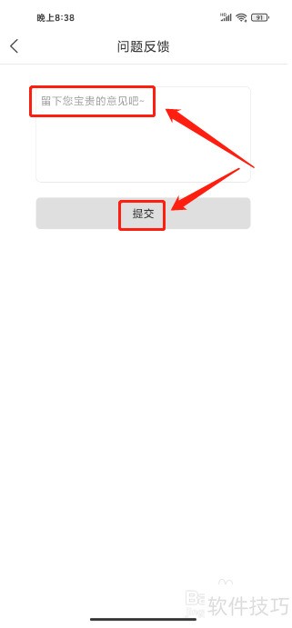 3、 打开反馈页面,填写内容后点击提交按钮。