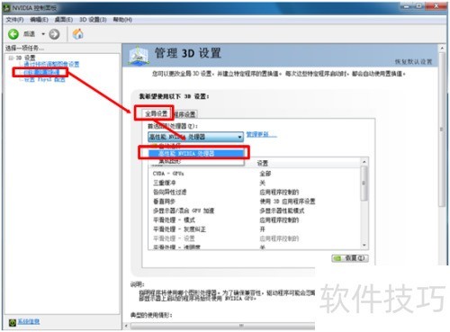 1、 打开控制面板中的NVIDIA设置,区分标准与高级选项,可自定义3D功能。
