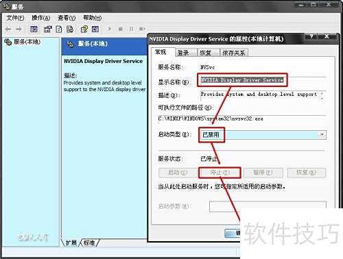 5、 该服务专为NVIDIA显卡设计,主要用于辅助驱动运行和相关功能支持。若你已熟悉其各项用途,并确认日常使用中并不需要这些功能,可选择将其禁用——这并不会影响显卡的基本性能,因为驱动程序早已安装完成。操作方法如下:依次点击开始菜单、控制面板、管理工具、服务,找到NVIDIA Display Driver Service,双击打开属性窗口,将启动类型设为禁用,点击应用,再点击停止,最后确认保存设置即可。整个过程简单清晰,适合希望精简系统服务的用户。