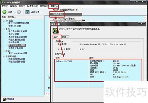 6、 在帮助菜单中选择系统信息,即可查看显卡型号及驱动版本。