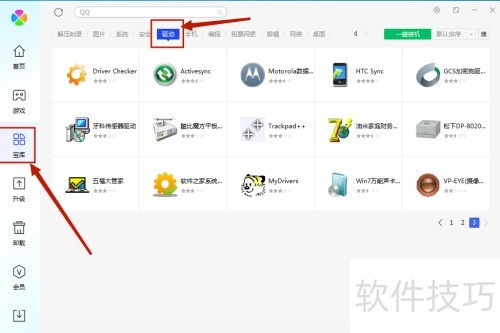 2、 在软件管理左侧栏点击宝库,进入全部软件分类后选择驱动,再用鼠标左键确认即可。