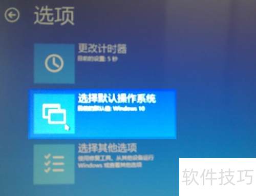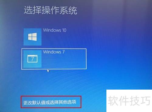 9、 启动进入系统选择界面后,点击更改默认设置或选择其他选项。