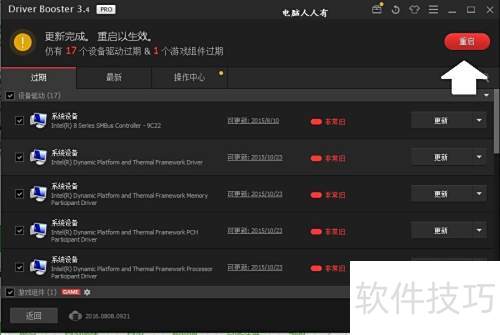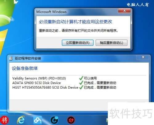 9、 更新重要设备驱动后,系统会提示重启,此时可保存文件并重新启动电脑以完成确认。