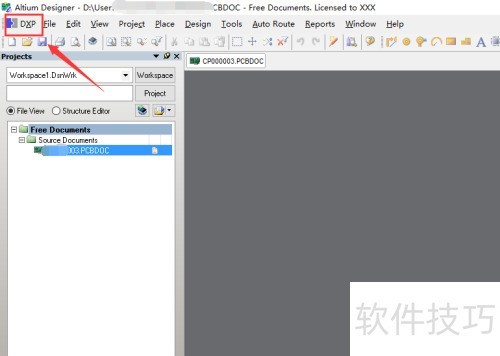 2、 点击左上角的dxp图标,操作示。