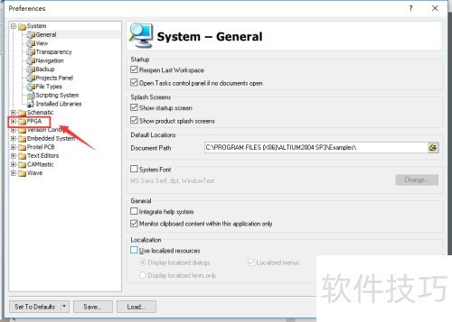 4、 在优先设定列表中展开FPGA选项卡,操作所示。