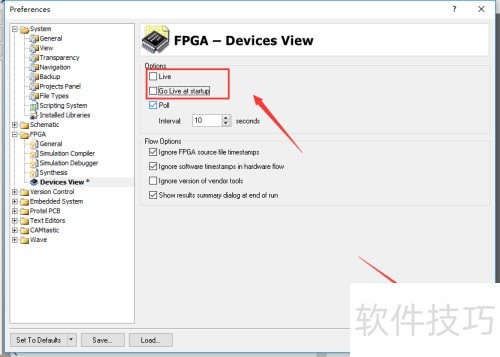 5、 在FPGA列表底部选择Devices View选项,所示。