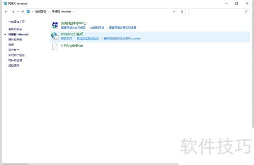 1、 在搜索框中输入控制面板,进入后选择网络和Internet选项。