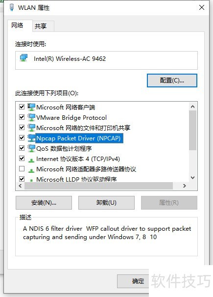 3、 第三步:在属性面板中找到并点击Npcap Packet Driver选项。