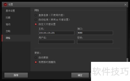 2、 扫描到更新无法下载时,需在设置中启用代理,虽速度较慢但有效。