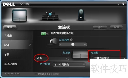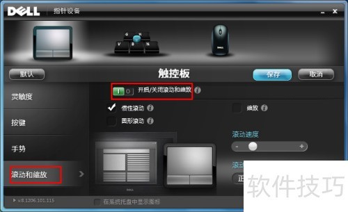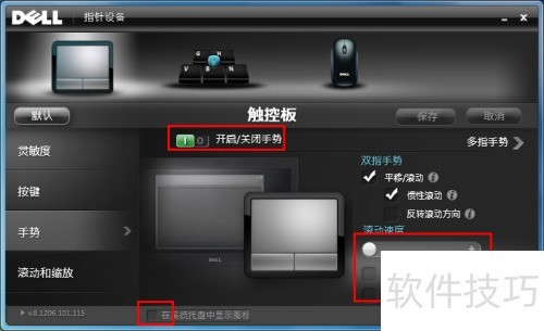 6、 调整戴尔触摸板的灵敏度、滚动缩放及手势设置,完成后点击保存即可。
