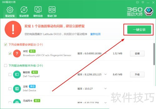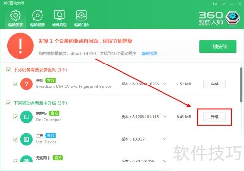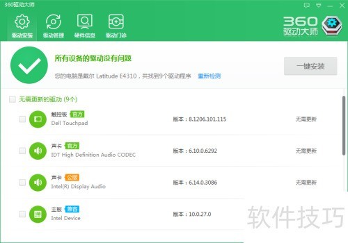 3、 勾选触摸板驱动后,点击一键安装即可。