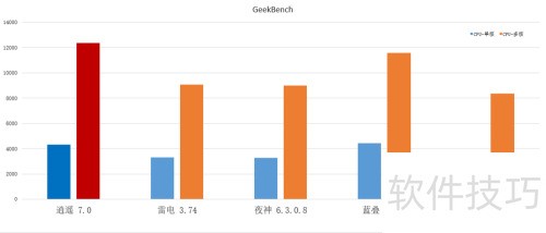 2、 GeekBench测试主要用于评估在相同设备条件下,模拟器对CPU资源的利用效率,涵盖单核与多核性能得分。从柱状图可见,各模拟器在单核表现上差距不大,均处于相近水平;但在多核场景中,仅有两款模拟器显著领先,性能明显优于其余三款,展现出更强的多线程处理能力。