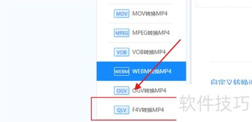 3、 进入视频转换界面后,点击左侧导航栏中的F4V转MP4选项,即可进入该视频格式的转换页面,开始进行格式转换操作。