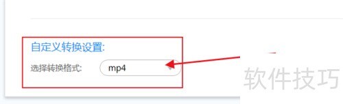 5、 在自定义转换设置中,将视频输出格式选择为MP4,确保转换完成后文件以MP4格式保存,方便后续使用和播放。