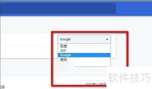 4、 若非首选,点击下拉菜单选择Google即可更改。