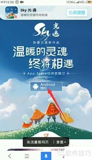 3、 访问光遇官网,找到并点击Android预约按钮即可完成预约。