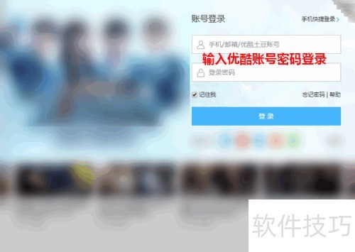2、 此时会弹出优酷账号登录窗口,输入账号和密码即可完成登录。