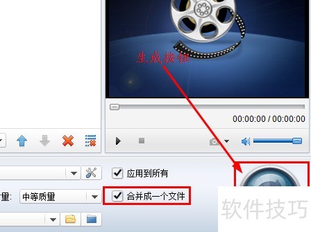 6、 设置完毕后,勾选合并为一个视频选项,点击生成即可完成合并,操作所示。