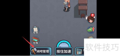 2、 点击游戏界面左下角的网吧管理功能。