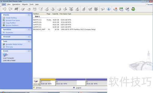 1、 下载Acronis Disk Director Suite,按照安装向导完成安装,启动软件后界面将显示。