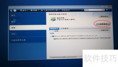 5、 备份完成后,进行还原操作十分简便,只需点击恢复按钮,浏览并选取需要恢复的备份文件即可完成。