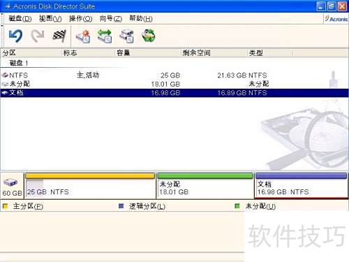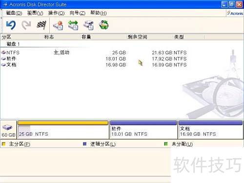 3、 随后将显示所示的Acronis Disk Director Suite工具操作界面。