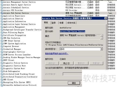 4、 Acronis的网页发布功能通过名为AmsWebServer的Windows服务进行管理,其显示名称为Acronis Web Server Service。该功能的启用或禁用可通过启动或停止此服务来实现,用户只需在系统服务中操作即可控制该功能的运行状态,操作简便且响应及时。