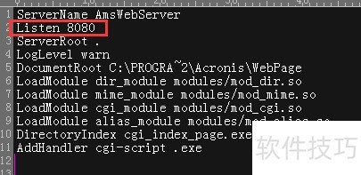 6、 Acronis的Web发布服务器默认采用TCP 8080端口,若需更改端口,必须编辑Apache的配置文件。该文件名为httpd.conf,位于AMS服务器的安装目录中,具体路径根据实际安装情况而定,找到后可通过修改其中的端口设置实现变更。