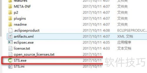 2、 将下载的压缩包解压后,进入sts-bundle文件夹中的sts-3.9.1RELEASE目录,找到STS.exe可执行文件,双击即可启动Spring Tool Suite开发工具。