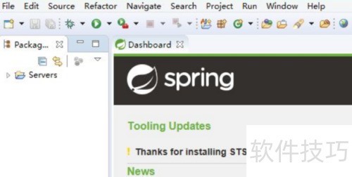 4、 启动STS后,界面与Eclipse极为相似,主要区别在于集成了大量Spring相关的功能模块,整体布局和操作体验保持一致。