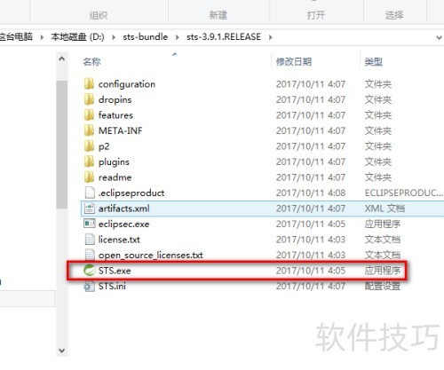 2、 将下载的压缩包解压后,进入sts-bundle文件夹中的sts-3.9.1RELEASE目录,找到STS.exe可执行文件,双击即可启动开发工具。为方便日后使用,可将其创建快捷方式并发送到桌面,这样能快速访问和启动STS,提高操作效率,节省查找时间,实现便捷启动。