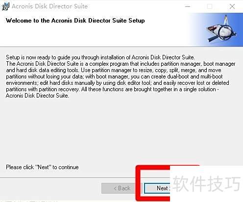 18、 返回到第10步时的Acronis Disk Director Suite安装界面,继续后续操作。
